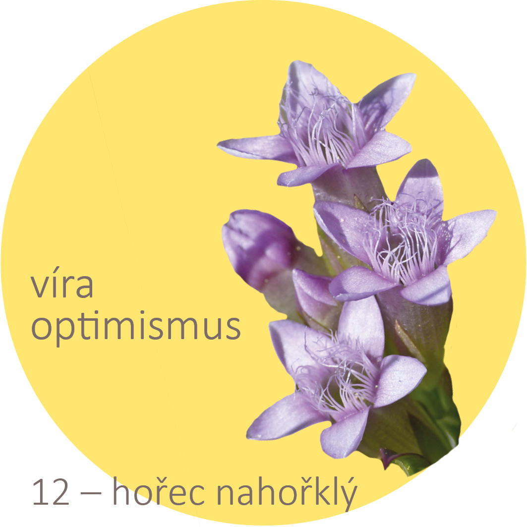 Dietmar Krämer: Hořec nahořklý / 12 – Gentian – odpovídá charakteru, s jakým přicházíme na svět – Sklíčenost, pesimismus. V jeho systému je zařazen jako esence Komunikace.